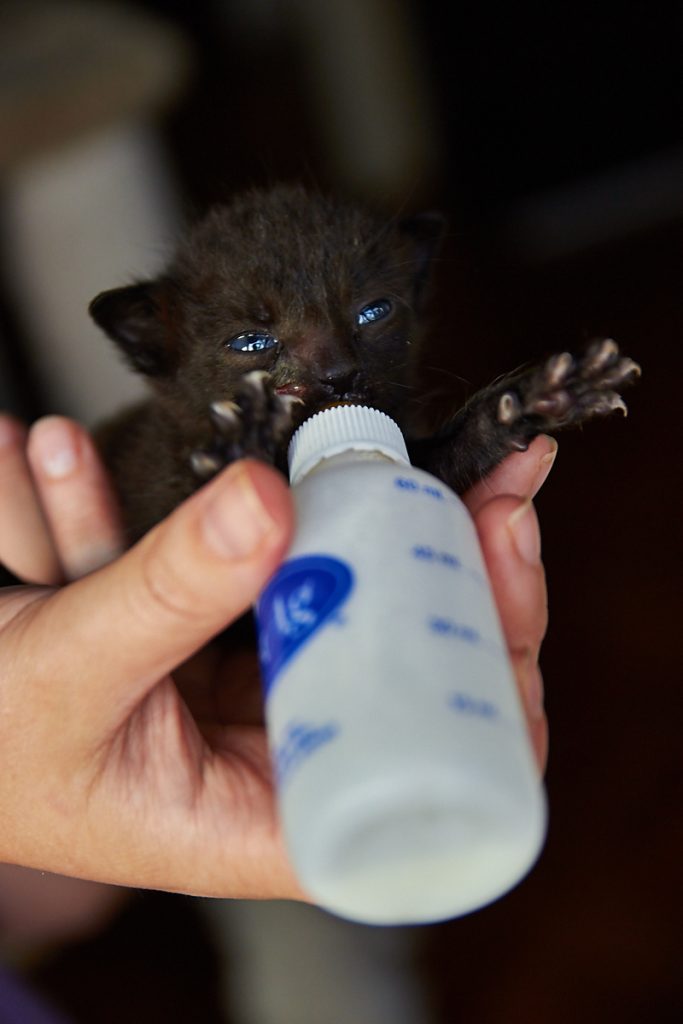 Ako imaju zatvorene oči, mlađi su od cca 2 tjedna i definitivno trebaju mlijeko (u prahu, zamjensko mlijeko za mačiće). Nahranite ih što je prije moguće i hranite u manjim razmacima (max 2-3 sata). Kako budu stariji, razmak između hranjenja će se povećavati. Potrebno ih je hranjenje i noću (svaka 3-4 sata, postupno povećavajte razmak).